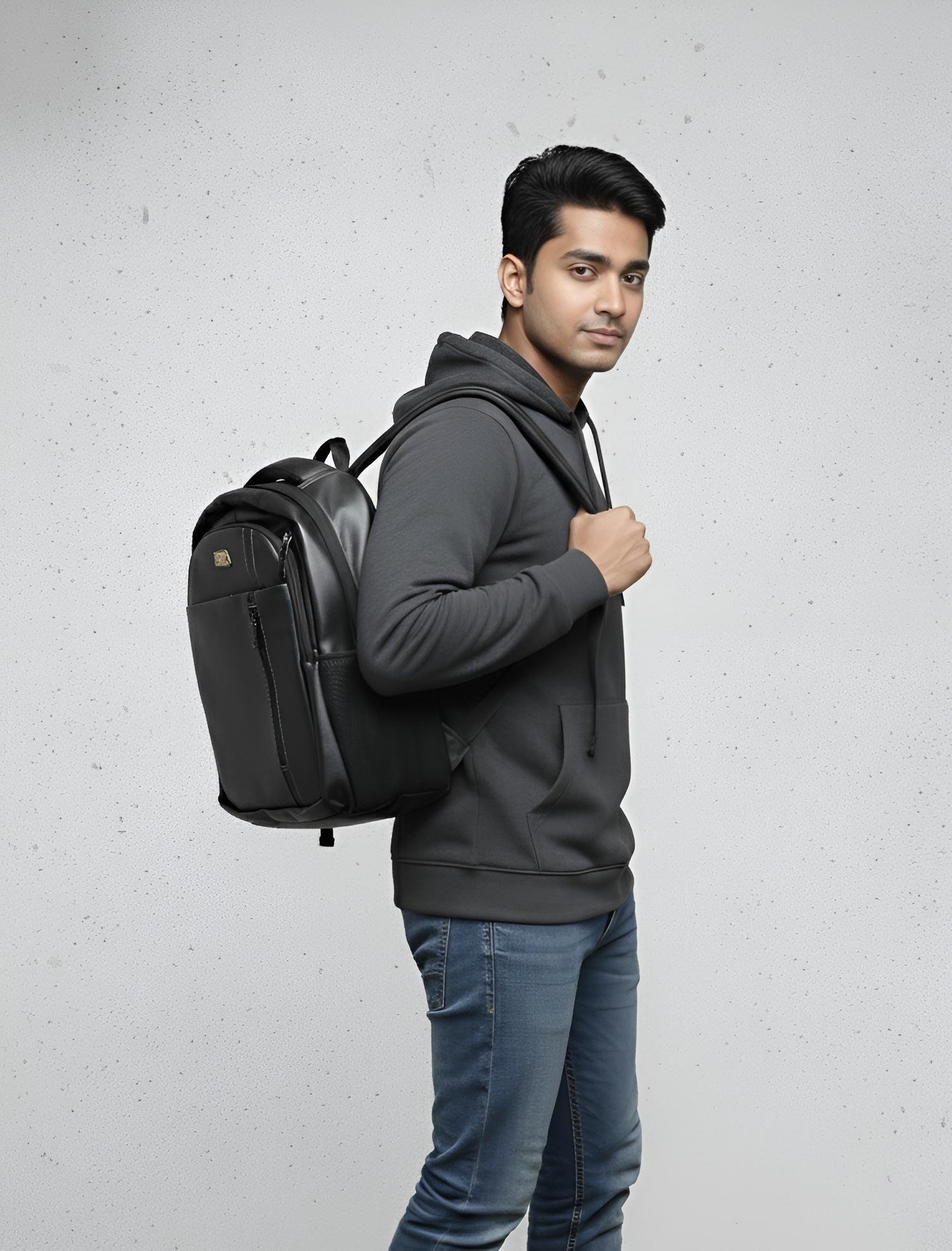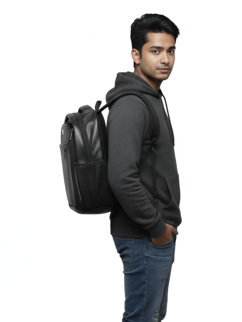 Crafted with high-quality synthetic leather, it offers a classy look while remaining lightweight and comfortable. The backpack features a spacious main compartment, a padded laptop section, and multiple pockets to keep books and essentials organized.