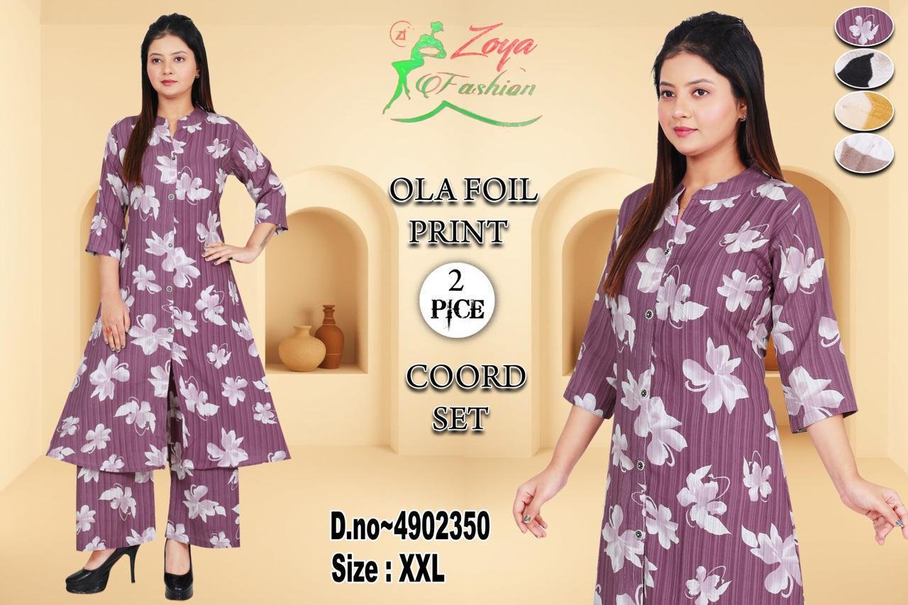 Upgrade your ethnic wardrobe with this stylish Women’s Co-Ord Set featuring a beautiful Ola Foil Print. Crafted from comfortable fabric, this 2-piece set includes a printed kurta paired with matching palazzo pants. Perfect for daily wear, office wear, casual outings, and small gatherings, this outfit offers both elegance and comfort.