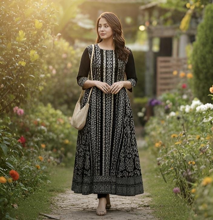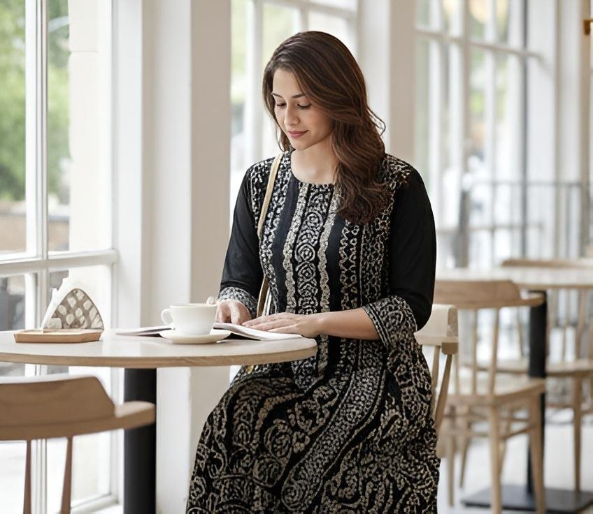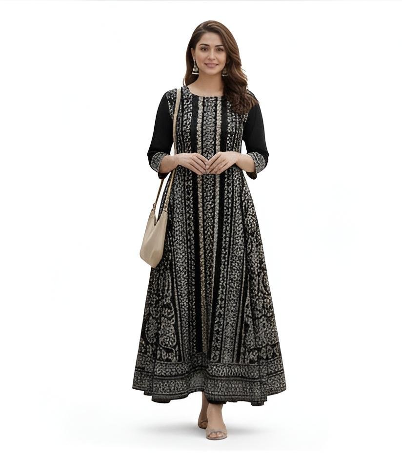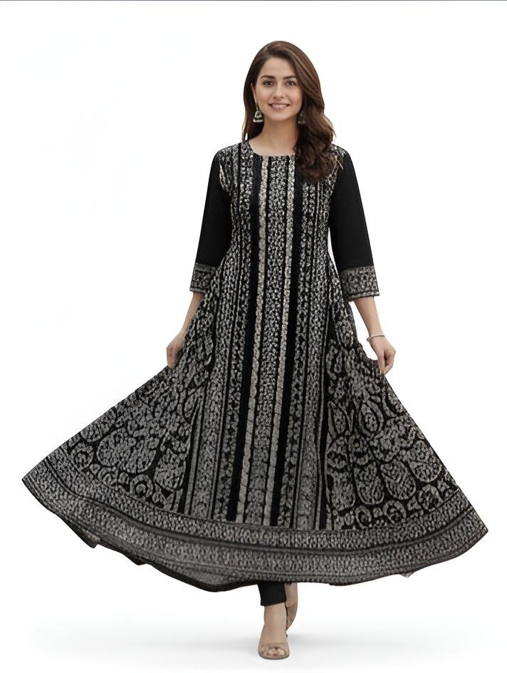 Tags: women kurti, cotton anarkali kurti, long kurti for women, ethnic kurti, black printed kurti, office wear kurti, daily wear kurti