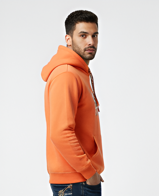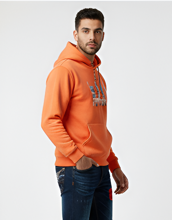 Elevate your everyday wardrobe with our Vibrant Orange Graphic Hoodie. Designed for the modern man who values both style and substance, this pullover offers a relaxed fit that doesn't compromise on silhouette. Whether you are heading out for a cool evening stroll or meeting friends, the breathable yet insulating fabric ensures you stay comfortable throughout the day. The striking color and contemporary graphic make it a centerpiece of any outfit.
