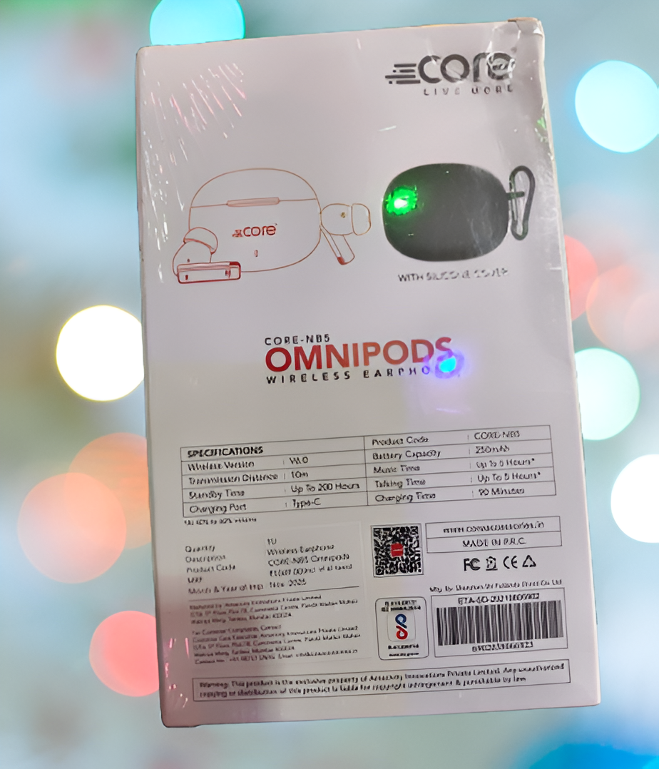CORE Omnipods are stylish true wireless earbuds designed for immersive sound, long battery life, and comfortable all-day use. With up to 32 hours of total music time, these earbuds are perfect for music, calls, gaming, and daily use.