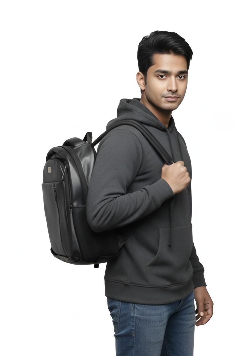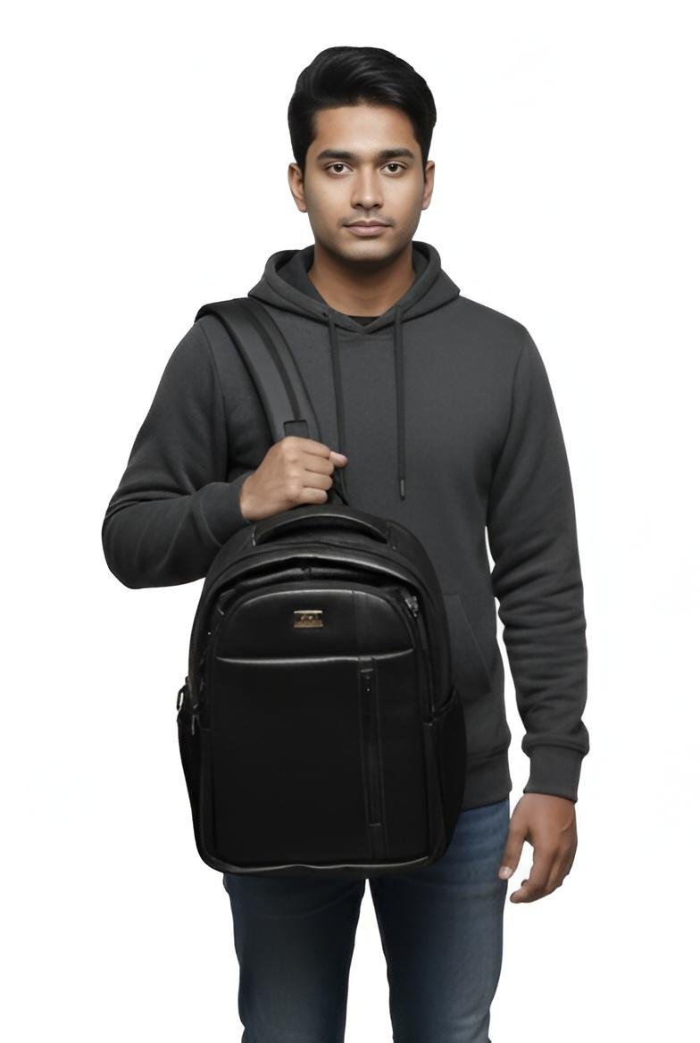 Crafted with high-quality synthetic leather, it offers a classy look while remaining lightweight and comfortable. The backpack features a spacious main compartment, a padded laptop section, and multiple pockets to keep books and essentials organized.
