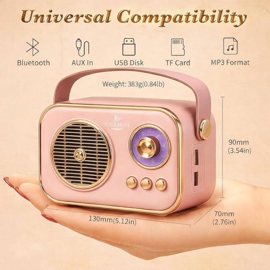 The Rock Music RM-BT-636 Portable Bluetooth Speaker brings together classic retro style and modern audio technology to enhance your music experience.